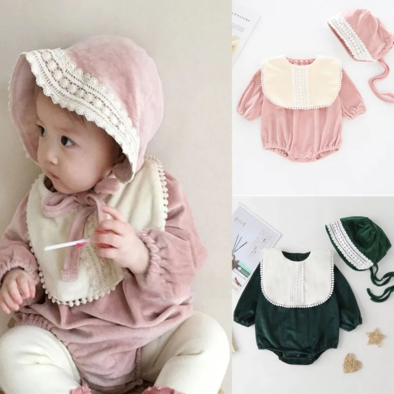 KLV/милой одежды из 2 изделий для маленьких девочек комбинезон с длинными рукавами с шапка (комплект), Одежда для новорожденных, одежда в стиле...