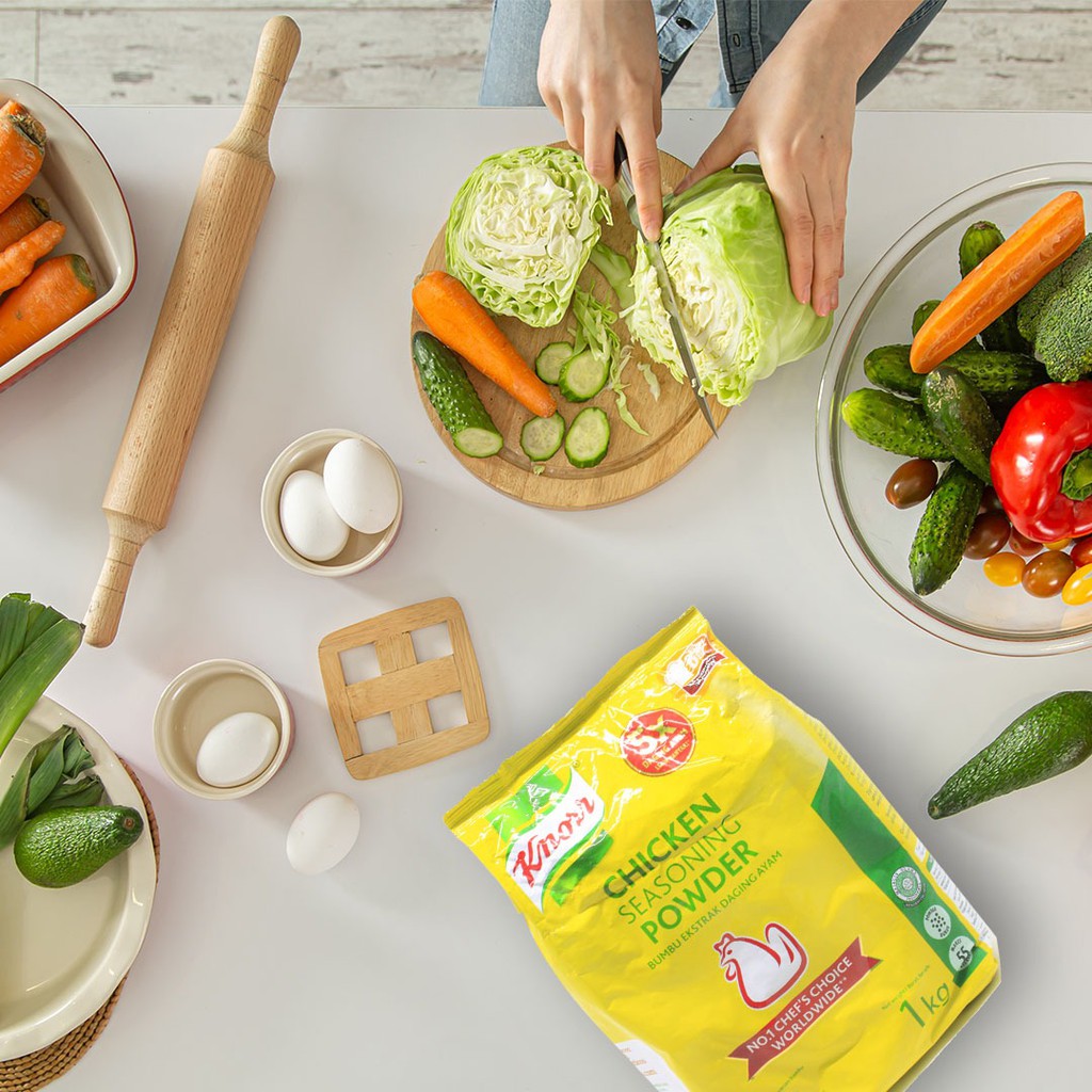 KNORR Chicken Seasoning Powder Dibuat oleh chef untuk chef KNORR bumbu ekstak daging ayam mengandung daging ayam berkualitas untuk memperkaya rasa kreasi kuliner anda. Dapat digunakan untuk berbagai masakan. Nikmati rasa asli umami ayam.