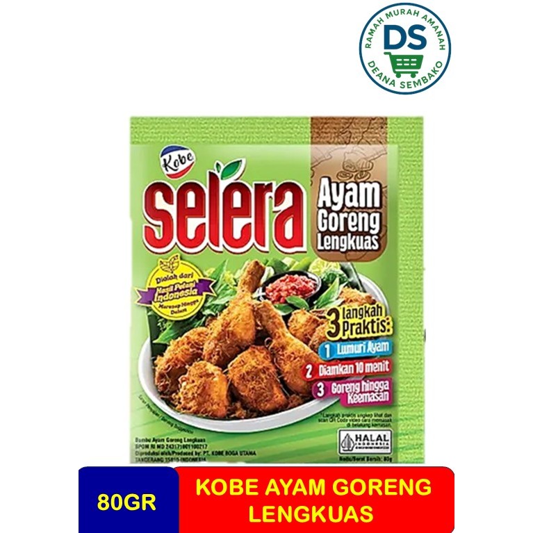Selera Bumbu Ayam Goreng Lengkuas terbuat dari bahan alami pilihan berkualitas dan diproses menjadi tekstur bumbu segar yang kental sehingga memiliki rasa segar alami. Dengan isi banyak (80 gram) bisa untuk 1 ekor atau 1 kg ayam. Harganya yang hemat dan sangat ekonomis membuatnya pilihan terbaik untuk menghadirkan ayam goreng lengkuas yang lezat untuk keluarga.