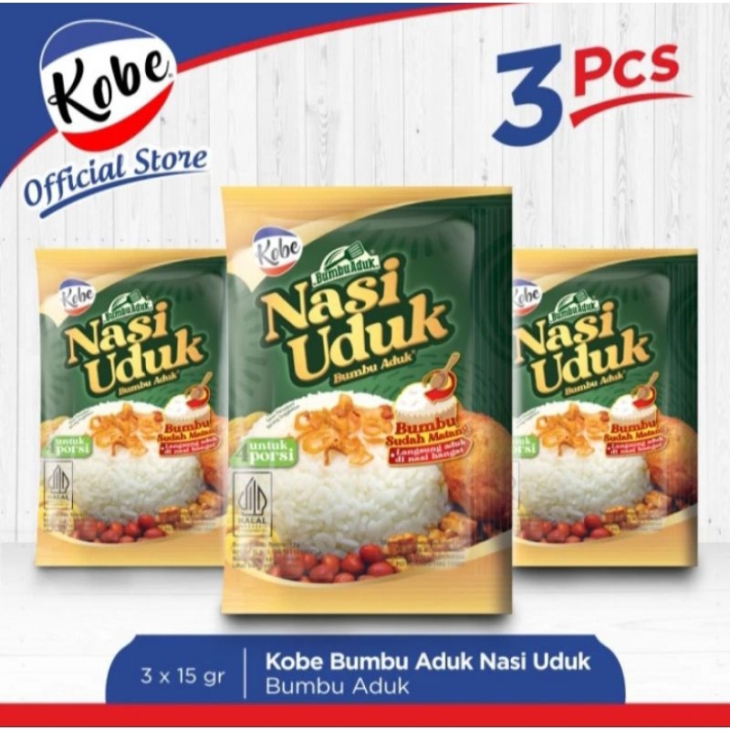 kbe Bumbu Aduk Nasi Uduk adalah bumbu matang yang praktis untuk membuat nasi uduk cukup dengan diaduk pada nasi hangat. Kobe Bumbu Aduk Nasi Uduk dapat menyulap nasi putih matang menjadi nasi uduk dengan seketika tanpa harus dimasak. Sudah lengkap dengan santan, semua rempah dan bumbu sehingga praktis, tidak perlu penambahan apapun.