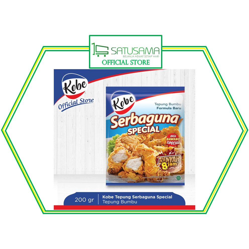 KOBE Tepung Serbaguna terbuat dari rempah pilihan dengan aroma gurih khas bawang putih. Paduan bumbu lengkap dengan takaran yang pas membuat hidangan apapun seperti ayam goreng, tempe, seafood dan gorengan lainnya kini lebih praktis dan lezat.