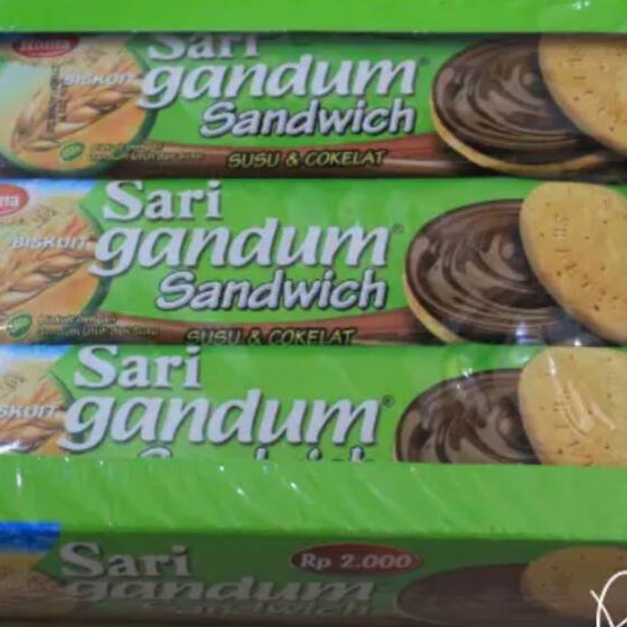 Biskuit Gandum Sandwich dengan susu dan krim Roma Sari Gandum Sandwich terbuat dari gandum pilihan, dengan susu di biskuitnya, dan vitamin serta krim susu cokelat. Baik untuk dinikmati oleh seluruh keluarga.