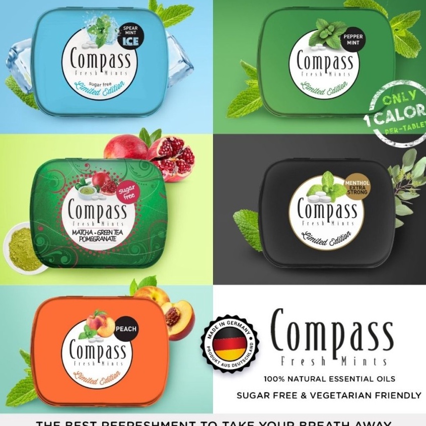 E [KODE 7QKV9] Compass Fresh Mint Candy (Permen Mint Sugar Free) 14g COMPASS FRESH MINT CANDY (PERMEN MINT SUGAR FREE) 14gr Hadir untuk selalu menyegarkan hari-hari kamu. Tidak hanya menyegarkan tapi juga melegakan nafas dan tenggorokan! Sugar Free, Aspartame Free, Acesulfame K Free, Gluten & Lactose Free dan Vegetarian Friendly. Hanya 1 kalori saja per tablet loh dan yang pasti 100% Natural Essential Oils.