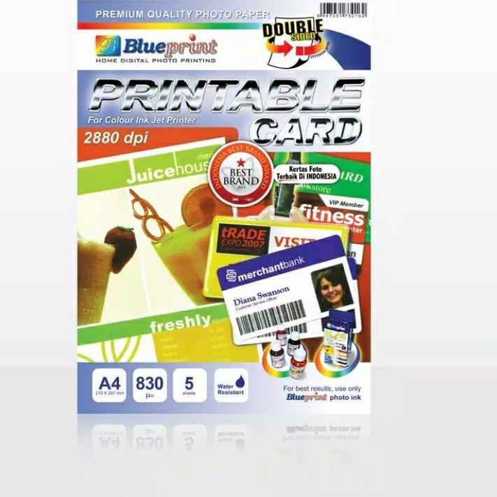 Blueprint PVC ID Card ideal digunakan untuk mencetak kartu identitas, kartu member, menu restoran dan kartu plastik lainnya. Kertas PVC id card ini dicetak dengan menggunakan semua jenis printer inkjet.