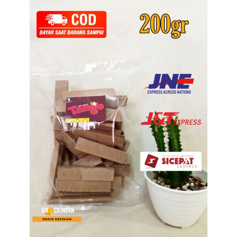 Wafer Tango original rasa Coklat, Vanila dan Bubblegum. Kode kemasan : S netto 200 gr. Harga sudah termasuk packing bubblewrap+dus. AWAS SNACK MUDAH HANCUR !