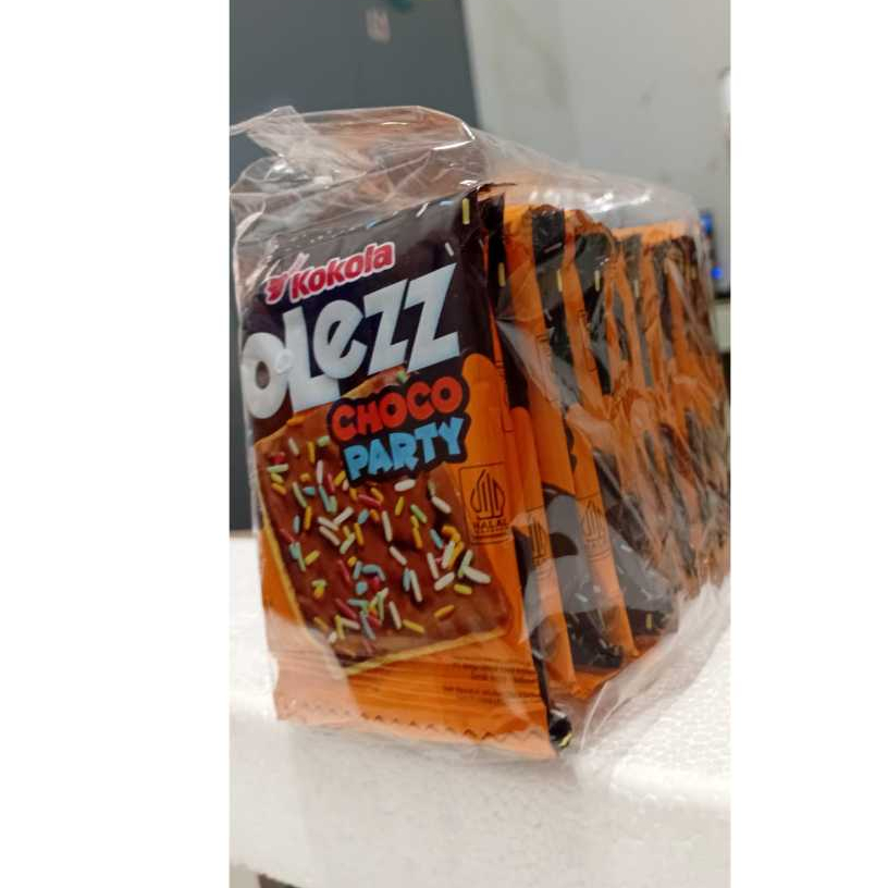 KOKOLA OLEZZ CHOCO PARTY 10GR RENTENG (ISI 20 PCS). BISKUIT RENYAH BERLAPIS KRIM COKLAT LEMBUT DAN MANIS .BISKUIT NYA ENAK COKLAT NYA ISTIMEWA .KEMASAN RENCENG ISI 20 PCS .COCOK UNTUK CEMILAN SANTAI SENDIRI MAUPUN KUMPUL BERSAMA KELUARGA