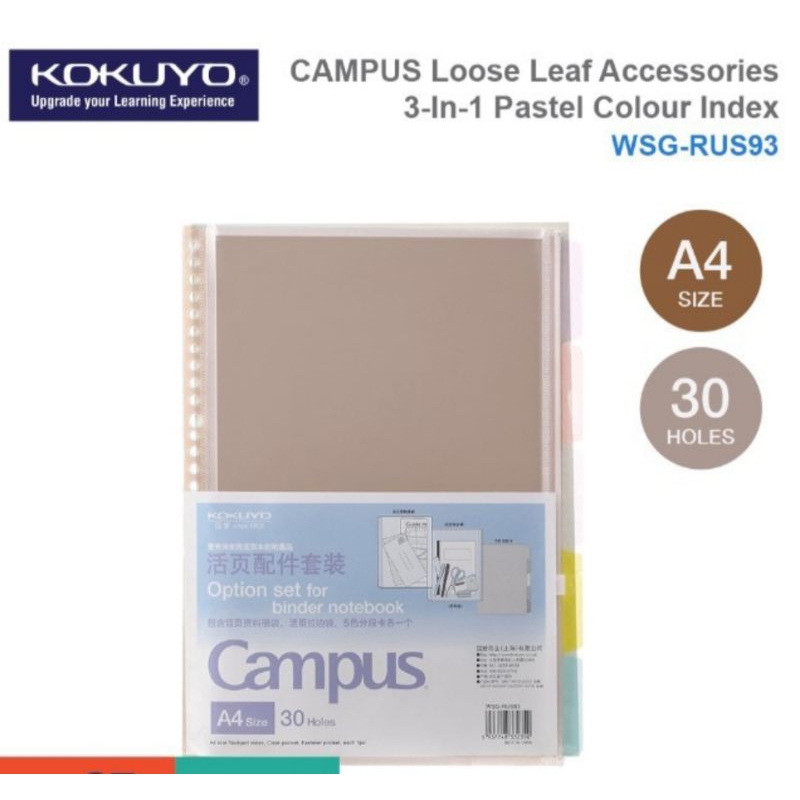 KOKUYO WSG-RUS93 CAMPUS LOOSE LEAF ACCESORIES 3 IN 1 PASTEL INDEX A4