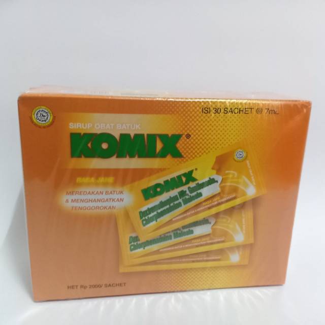 KOMIX RASA JAHE merupakan sirup batuk yang dikemas dalam sachet berukuran 7 ml dengan rasa Jahe. Obat ini mengandung Guaifenesin, Dextromethorphan HBr, dan Chlorpheniramin Maleate yang berkhasiat membantu meredakan batuk dan menghangatkan tenggorokan. KOMIX bekerja sebagai antitusif untuk mengurangi gejala batuk, antihistamin untuk meredakan batuk, dan ekspektoran untuk mengeluarkan dahak.