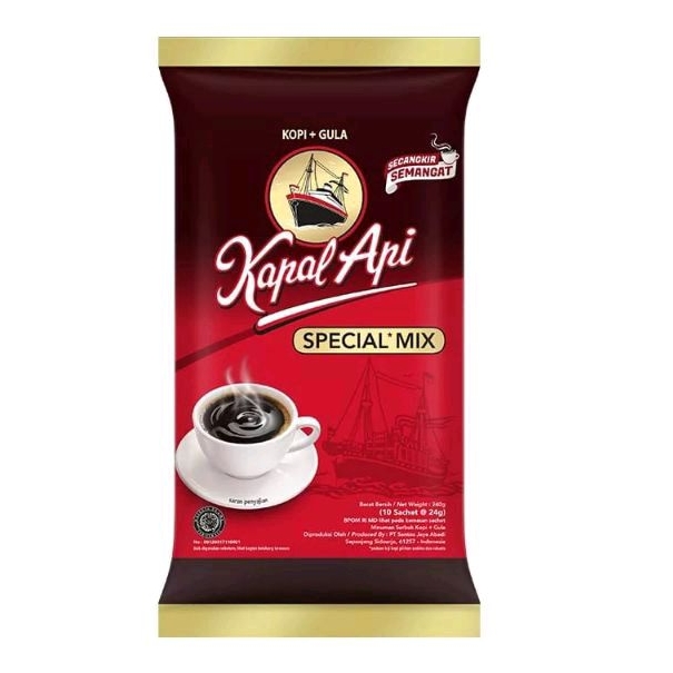 Kapal Api Special Mix Dibuat dari Biji kopi pilihan yang diolah dengan mesin yang paling modern dan campuran gula murni. Menjadikannya paduan spesial dari kopi dan gula. Kemasan Praktisnya, membuat kopi anda siap seduh dengan aroma kopi senikmat selera pilihan.