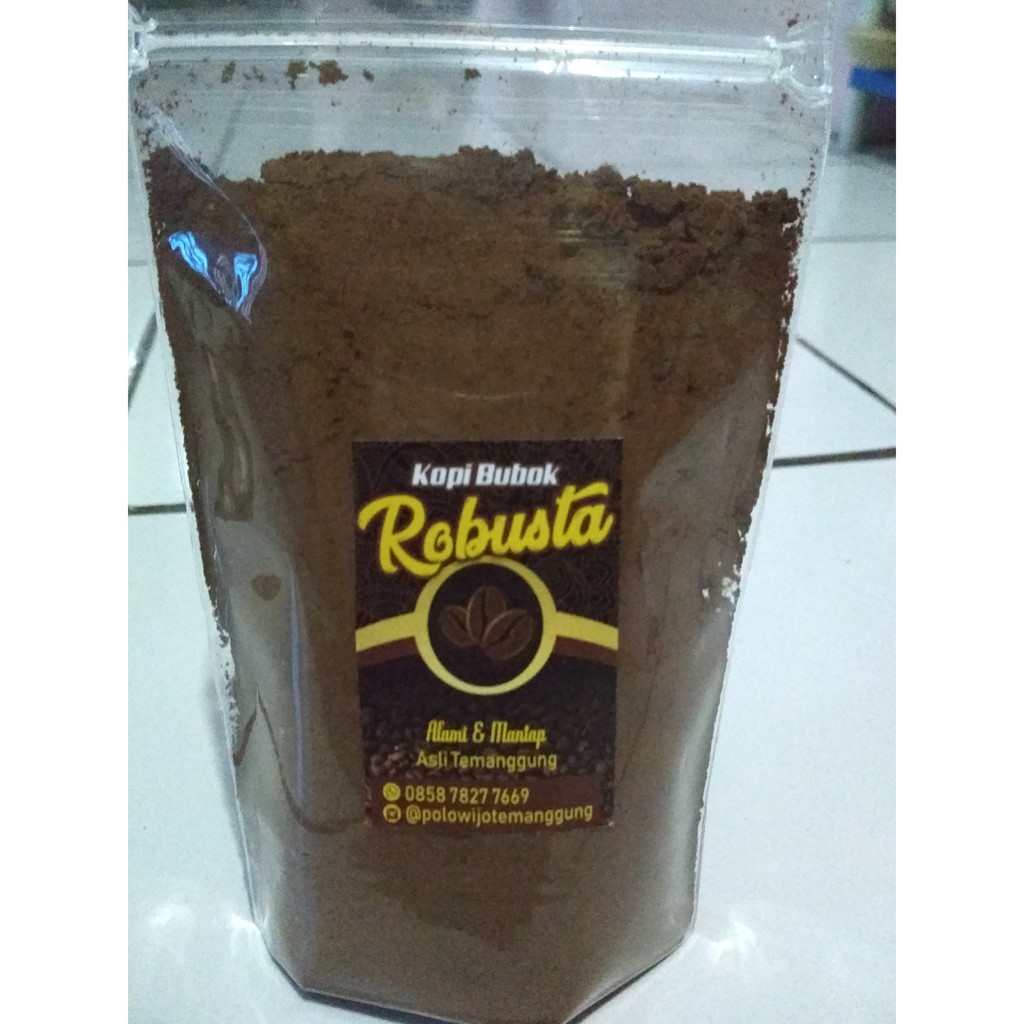 Kopi Bubuk Robusta Temanggung, kopi bubuk hitam murni tanpa campuran. Robusta yang tumbuh di perkebunan kopi milik sendiri dan diolah secara tradisional sehingga muncullah cita rasa khas tersendiri