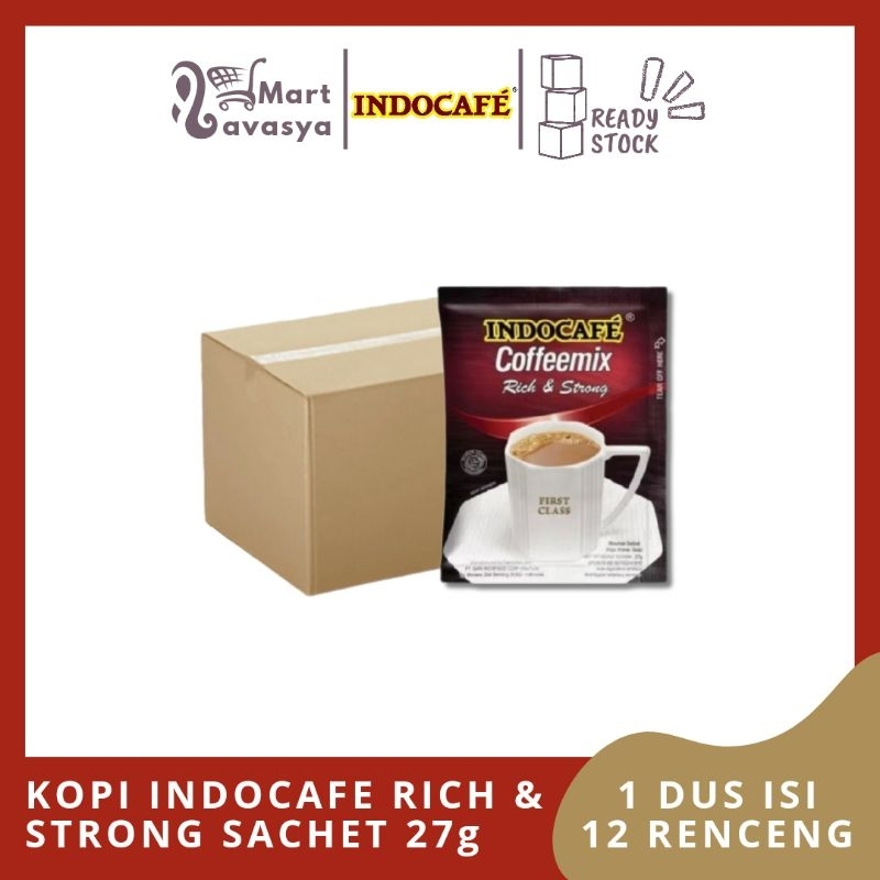 KOPI INDOCAFE RICH & STRONG 27g - 1 DUS ISI 12 RENCENG - KOTA BANDUNG - LAVASYA MART