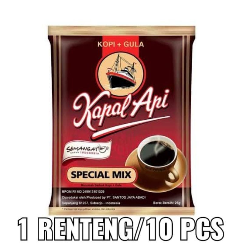 kopi kapal api kemasan 1 renteng isi 10 pcs. uk 25 gr.