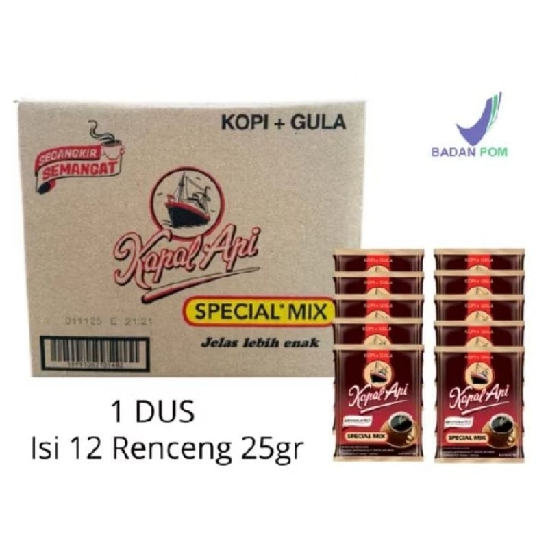 KOPI KAPAL API + GULA SPECIAL MIX COFFEE 1 DUS ISI 12 RENCENG 25GR MURAH MERIAH
