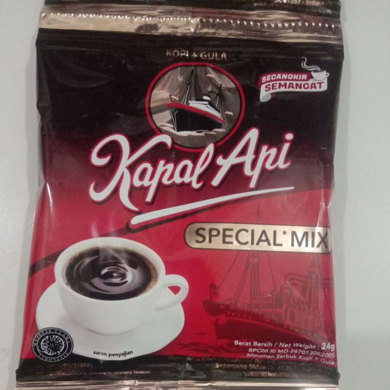 Kapal Api Special Mix 24gr merupakan kopi bubuk yang terbuat dari biji kopi pilihan. Kapal api menghasilkan kopi yang harum dan lebih enak. Tuangkan satu sendok makan ke dalam cangkir, tambahkan gula secukupnya, kemudian seduh dengan air mendidih 200 ml dan kopi ini siap disajikan.