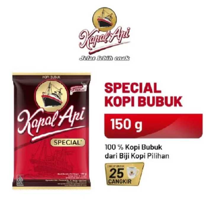 Kopi Kapal Api Special terbuat dari paduan biji kopi berkualitas "Special" menghasilkan aroma dan rasa yang jelas lebih enak, siap memberikan semangat untuk memulai hari.