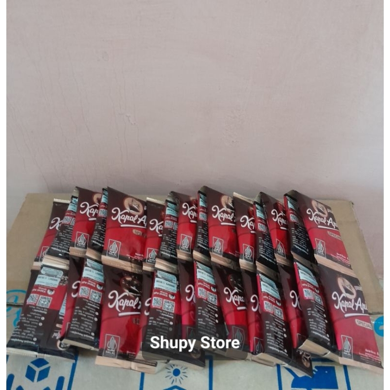 Merupakan kopi bubuk yang terbuat dari biji kopi pilihan. Kapal api menghasilkan kopi yang harum dan lebih enak. Tuangkan satu sendok makan ke dalam cangkir, tambahkan gula secukupnya, kemudian seduh dengan air mendidih 200 ml dan kopi ini siap disajikan.