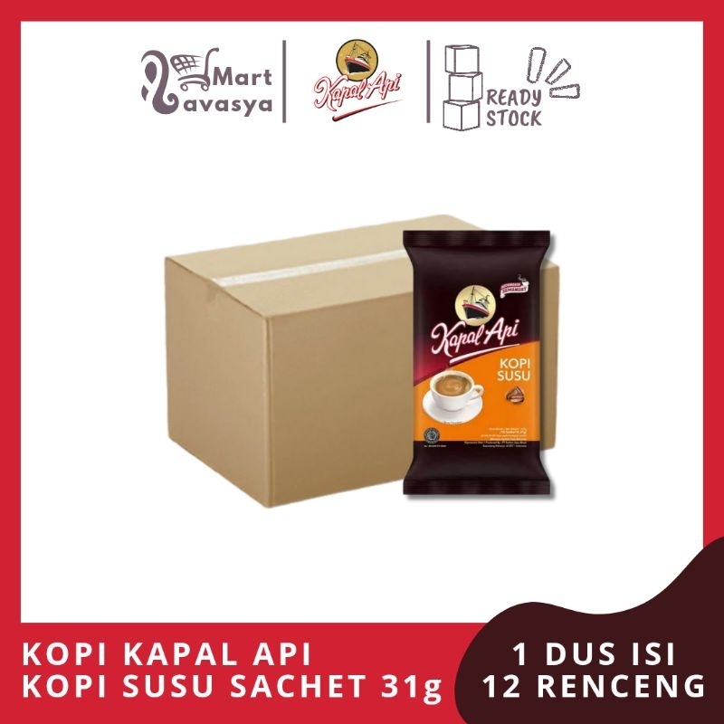 KOPI KAPAL API KOPI + SUSU SACHET 31g - 1 DUS ISI 12 RENCENG - KOTA BANDUNG - LAVASYA MART