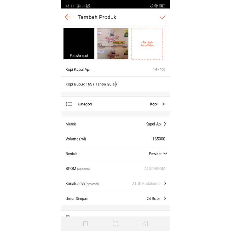 kopi kapal api saset tampa gula