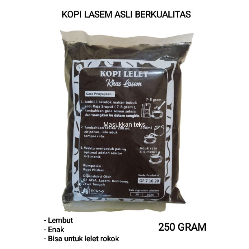 KOPI LELET LASEM ASLI KOPI LASEM CAP RAJA 225 GRAM