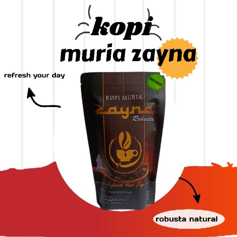 Kopi Muria Robusta Zayna adalah produk kopi pilihan hasil dari petani Gunung Muria yang kaya akan unsur hara & cafein yang alami. Bagi pecinta kopi, Aroma kopi Muria terkenal dengan cafein yang tinggi sehingga mampu memperoleh kenikmatan luar biasa bagi penikmatnya.