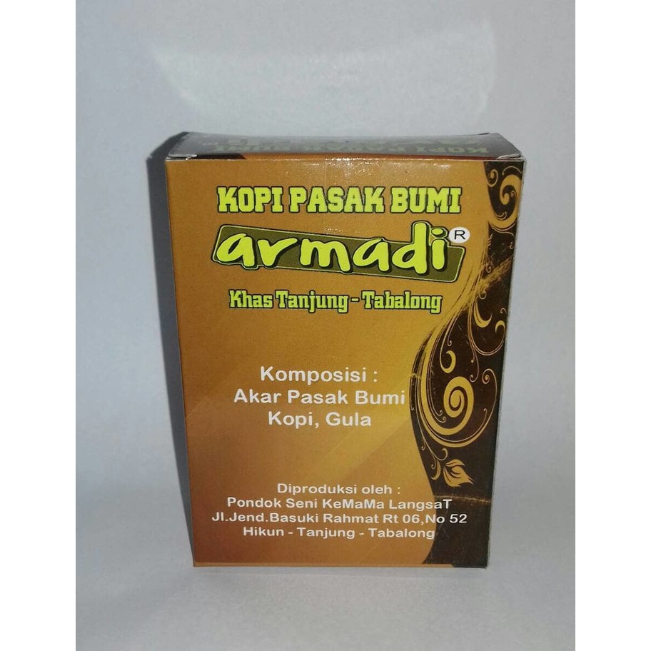 Kopi pasak-bumi armadi khas tanjung komposisi akar pasak-bumi + kopi + gula cara penyajian sangat mudah dan ad di kemasan