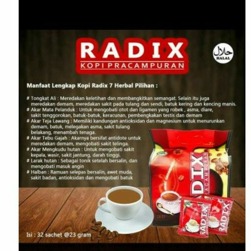 RADIX KOPI PRACAMPURAN PREMIX COFFEE MAI SECAWAN 32 SACHETS HPA BUATAN MALAYSIA