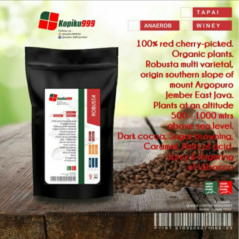 - Proses pasca panen : Natural semi anaerob proses/dry (red cherry)