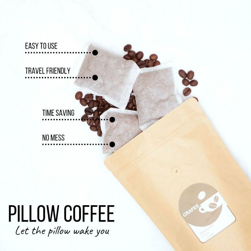 kopi robusta crafee merupakan kopi siap saji, dan berisi 10 pillow . sekarang menyajikan tanpa ampas.