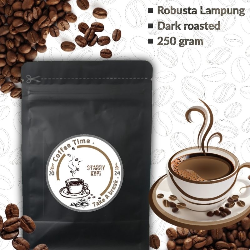 ▪️Kopi Premium Robusta Lampung 250 Gram, kopi murni dengan cara pengolahan natural dan tingkat roasting dark roast.