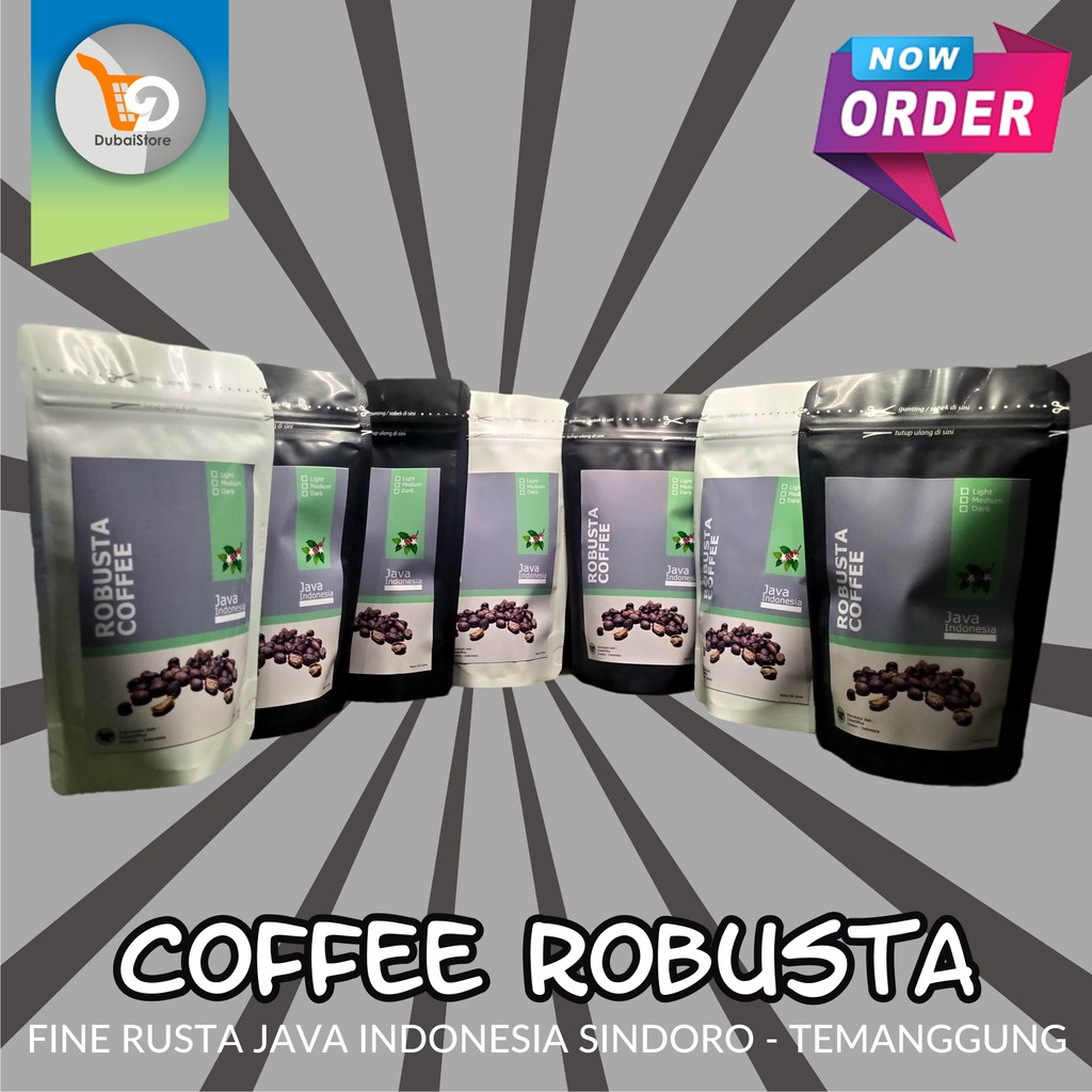 100% Kopi murni Robusta tanpa campuran. Cocok untuk Konsumsi sendiri dirumah dan juga sebagai oleh oleh untuk orang yang kita sayang.