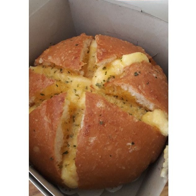 Roti lembut dengan isian krim keju dan polesan garlic butter yang gurihhhh banget ☺