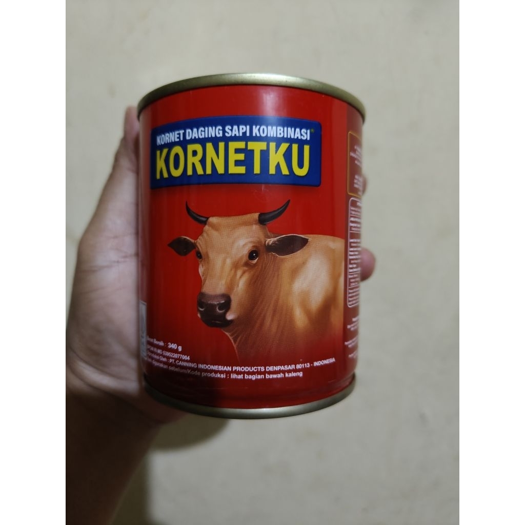 kornetnkombinasi daging slapi. berat netto i 340gram.