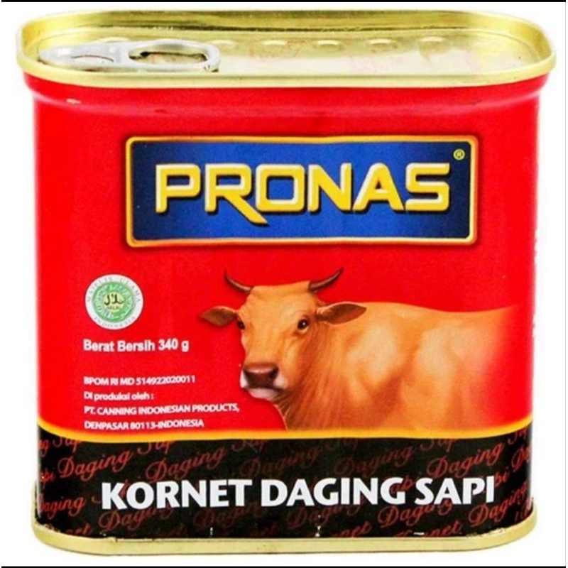 Kornet pronas ayam dan sapi kemasan besar 340gr dengan aneka variant.