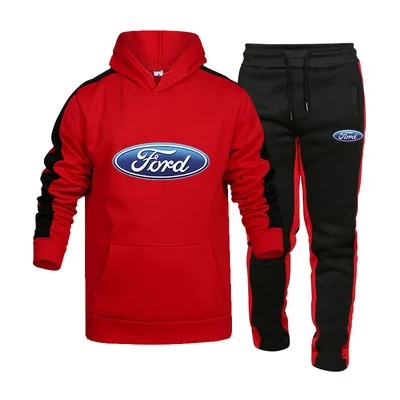 New Spring Autumn Men Ford Logo Hoodies Suit Fashion Casual Tracksuit Mens Sports Set Two Piece Stripe Hoodie Pant suit