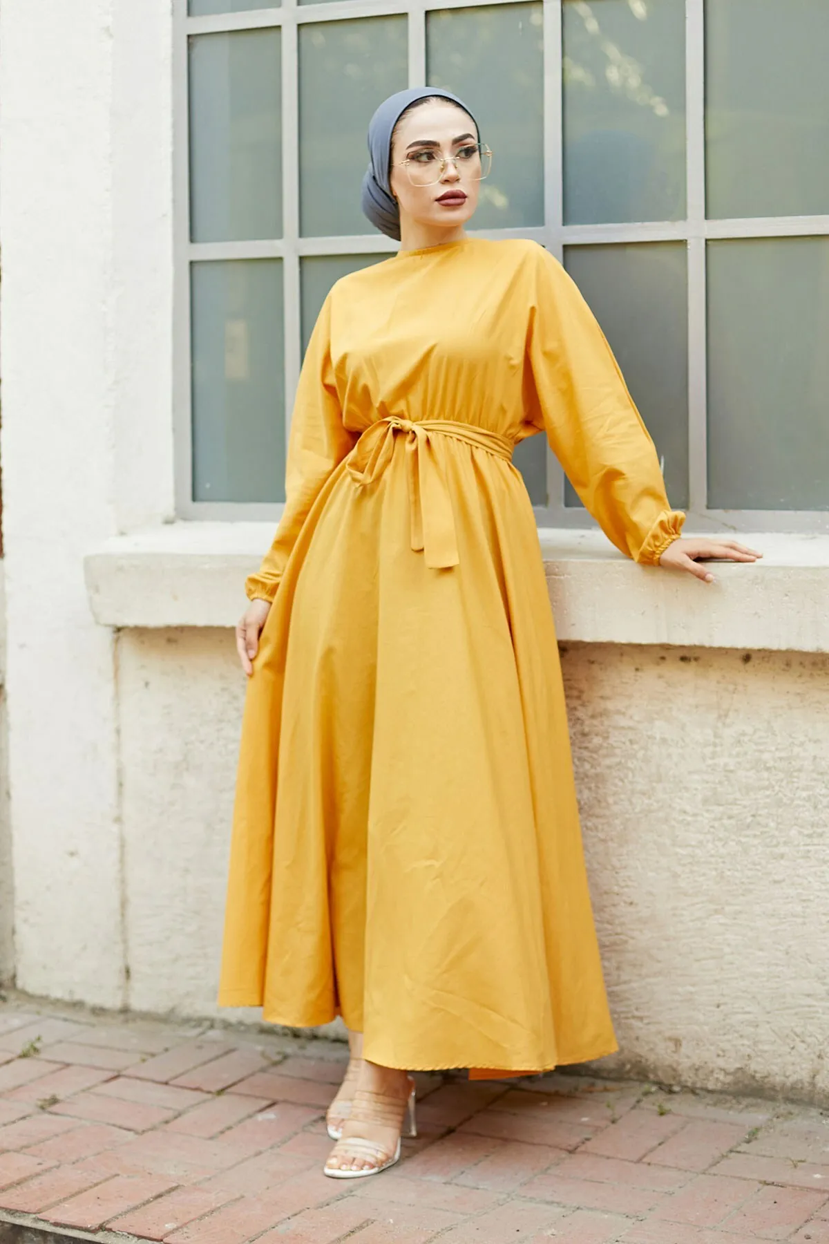 KPS однотонное женское платье-желтое осенне-зимнее платье 2021 мусульманский женский хиджаб головной платок Исламская Турция
