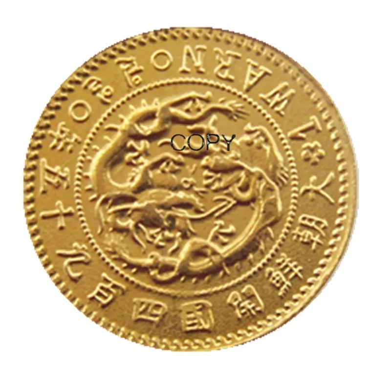 Позолоченная копия монеты KR(26) Королевство джозеона, 1 Предупредительная (король гойонг), 495 YYBCB