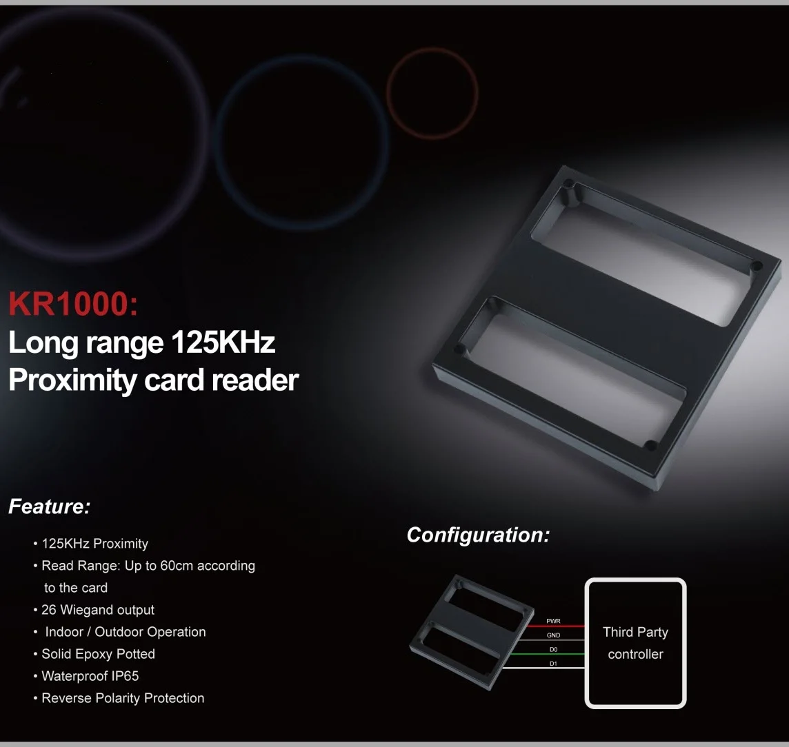 KR1000 Long Range RFID Reader 125KHz Proximity Card Reader Outdoor IP65 Waterproof for Vehicular Gate Parking Access Control Sys