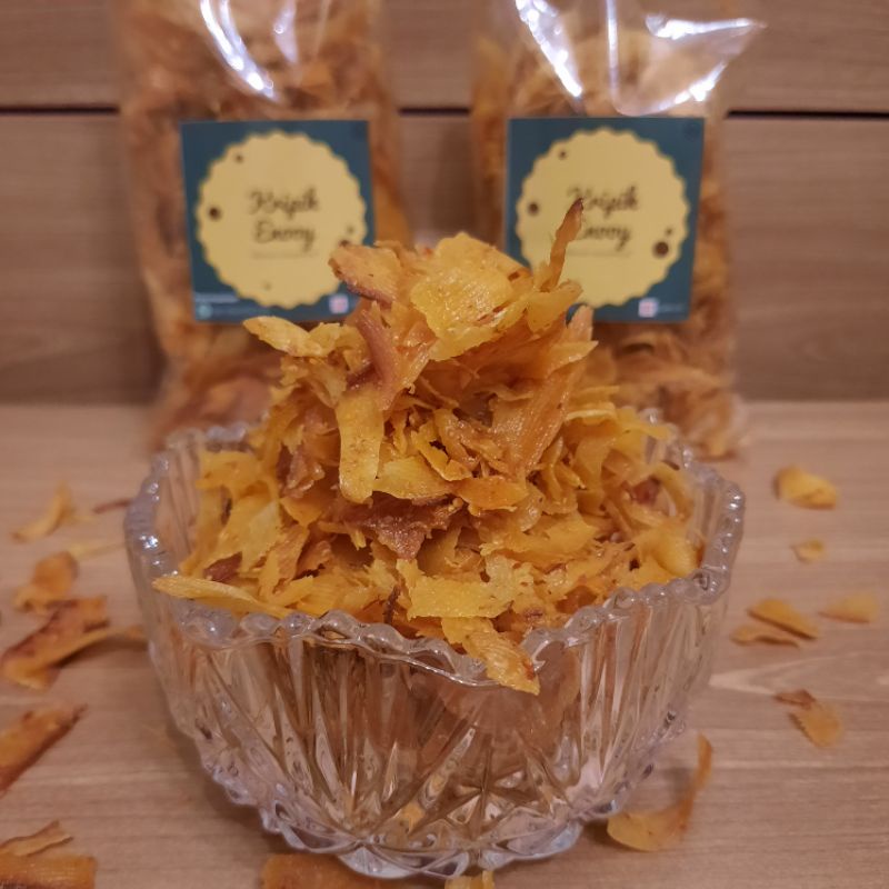 kripik enooy terbuat dari singkong pilihan,di goreng dengan sepenuh hati sehingga memiliki tekstur yang renyah yang membuat ketagihan memakannya,ditambah dengan bumbu gurih nan pedas.