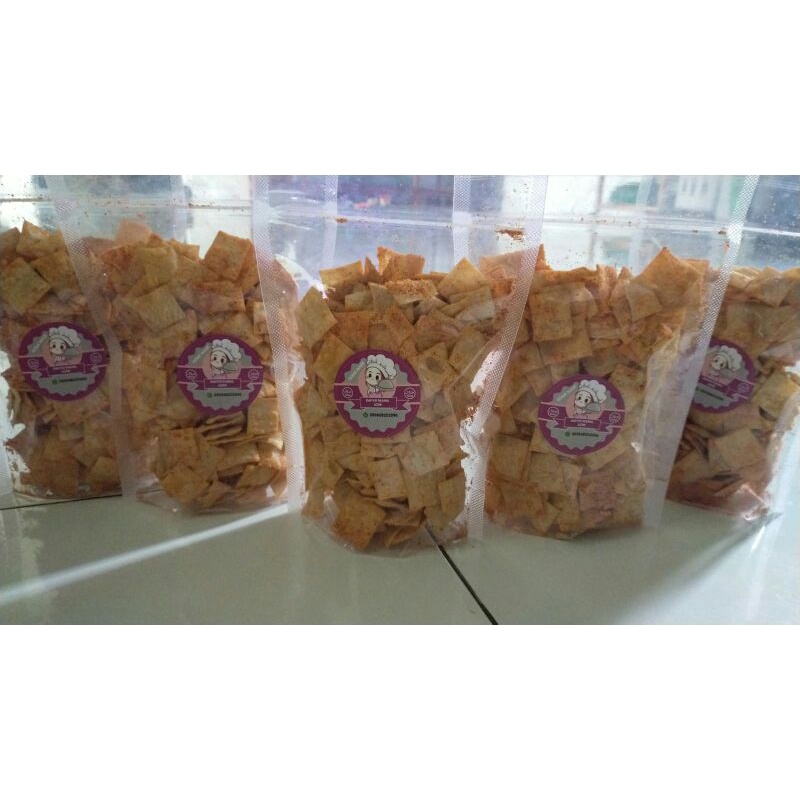 kripik pangsit terbuat dai bahan bahan pilihan dan berkualitas cocok bngt buat cemilan di rumah,tempat kerja, dan di saat saat lagi santai bareng temen dan keluarga.