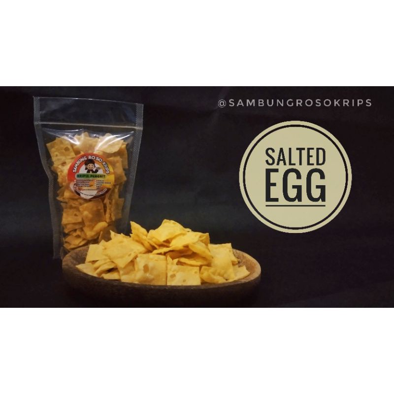 Kulit pangsit yg diolah homemade dan dilapisi bumbu tabur premium rasa salted egg/telur asin yg asin2 gurih bikin nagih. Ada harga ada kualitas yaa
