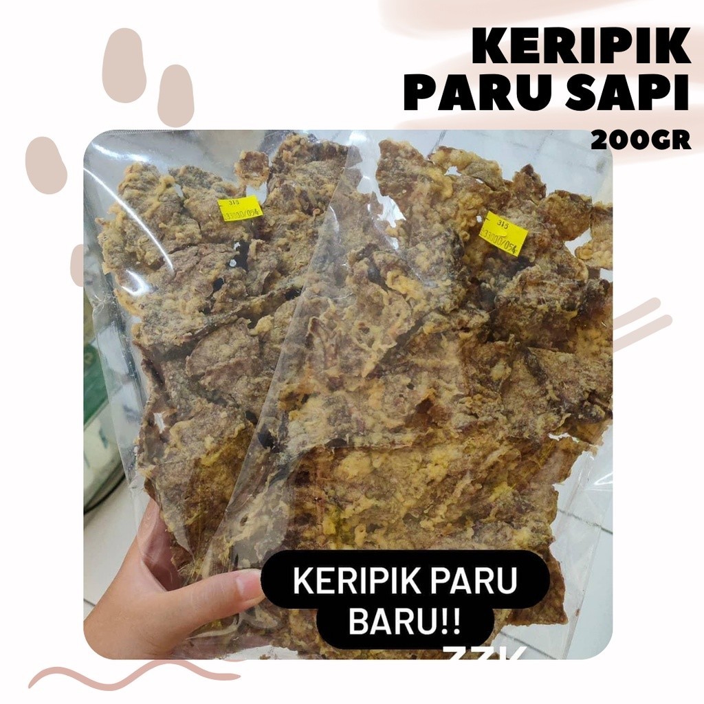 Keripik Paru berbahan dasar paru sapi, merupakan cemilan dan lauk yang sangat enak juga cocok untuk keluarga. Paru sapi melewati proses penggorengan sehigga menghasilkan keripik paru yang kriuk