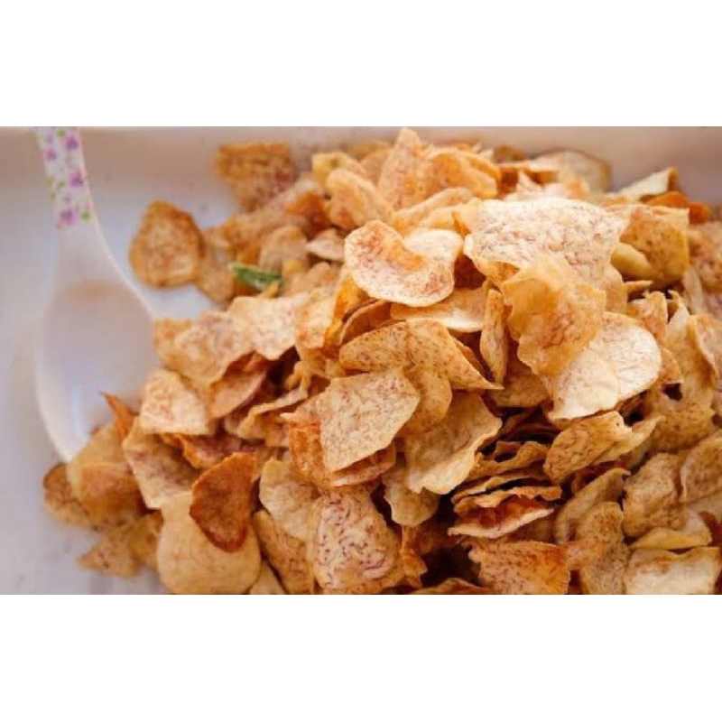 kripik talas dengan menggunakan talas yang segar dan higienis tanpa ada bahan pengawet