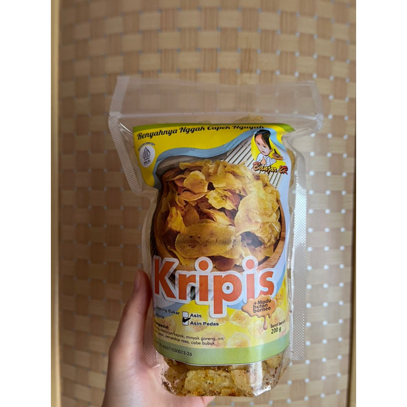 Keripik pisang dengan rasa asin pedas, tanpa pengawet dan pemanis buatan.