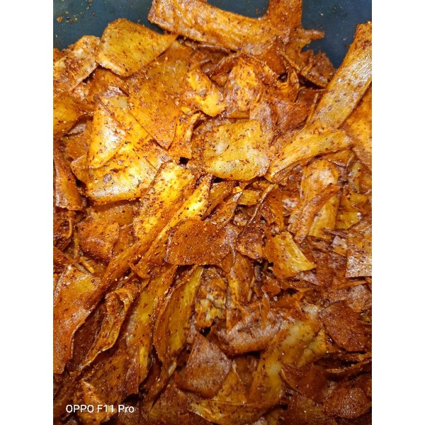 kripik terbuat dari singkong dengan ciri khas bawang dan lada hitam