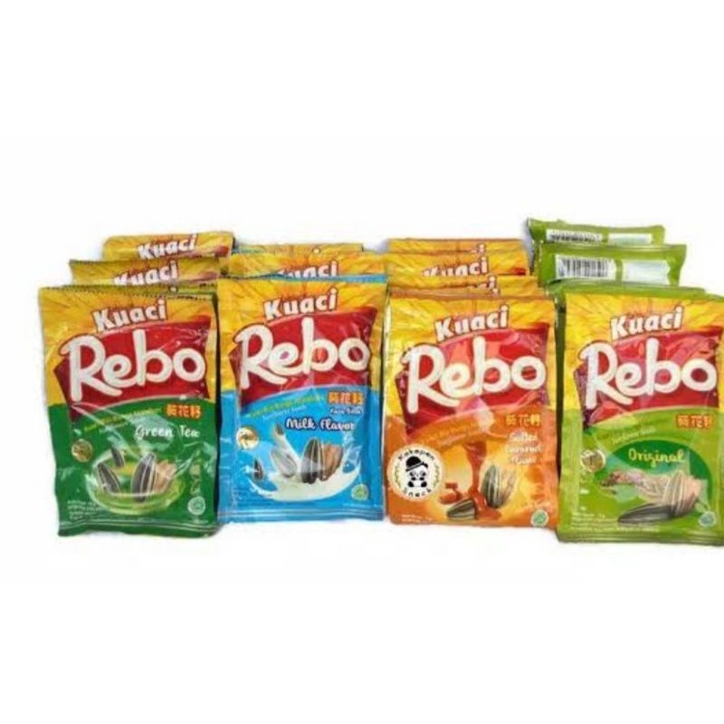 Kuaci Re bo Renceng tersedia 4 rasa,,,,Original, Milk, Green tie, Caramell,,,1 renceng isi 10 bks,,,yuk di orderb
