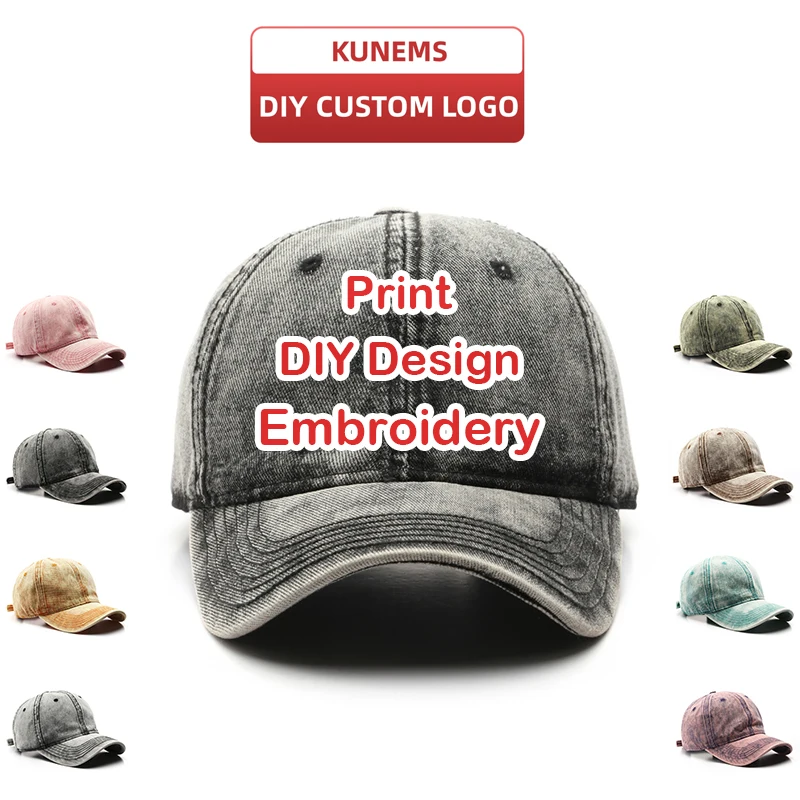 KUNEMS пользовательские вышитые логотипы, модные джинсовые бейсболки, женская дизайнерская хлопковая Солнцезащитная шляпа унисекс оптом