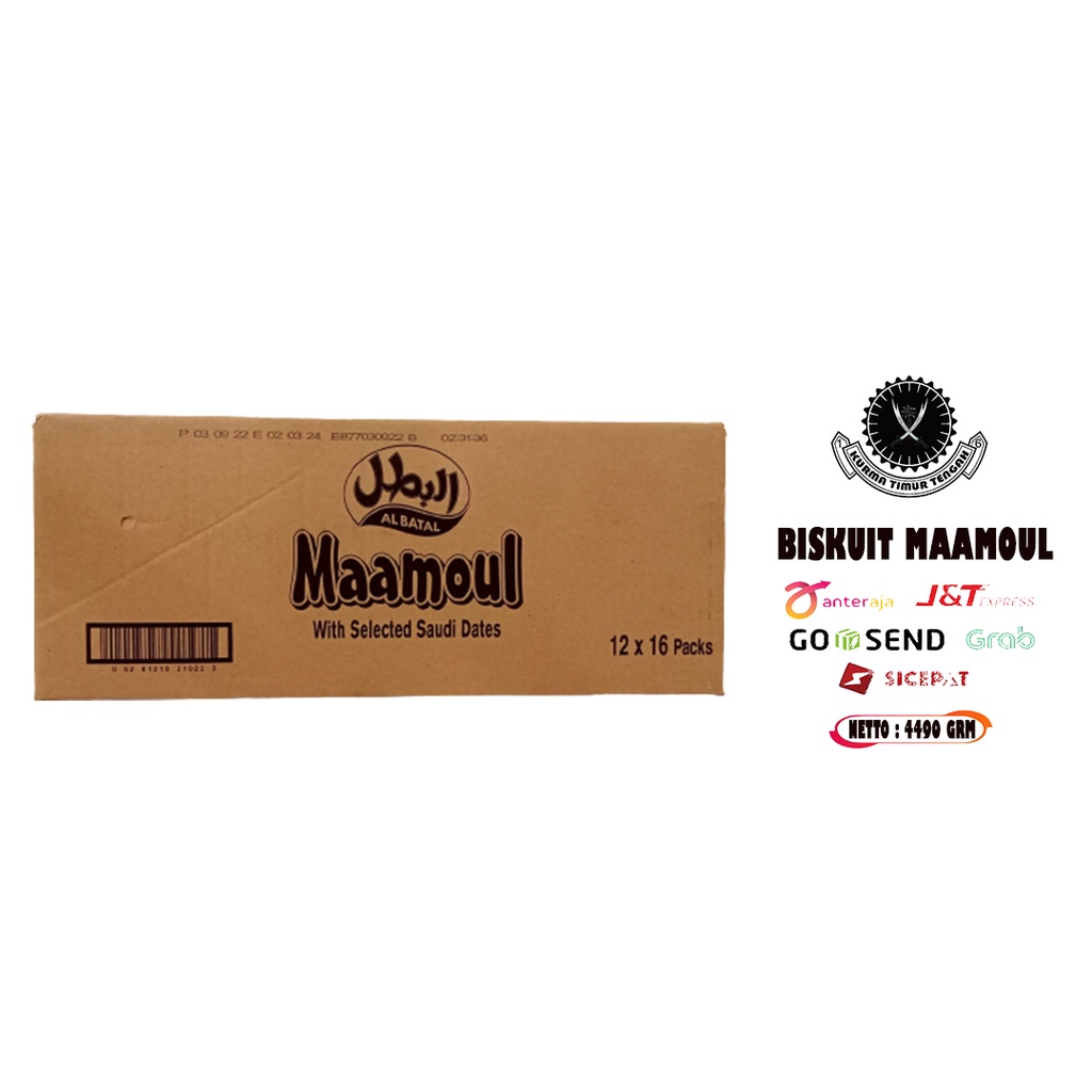 Biskuit Maamoul AL BATAL adalah jenis biskuit pie dengan isi selai kurma. Kurma pilihan yang mengandung antioksidan yang tinggi. Dapat dijadikan camilan sehat sehari hari atau hadiah / bingnkisan.