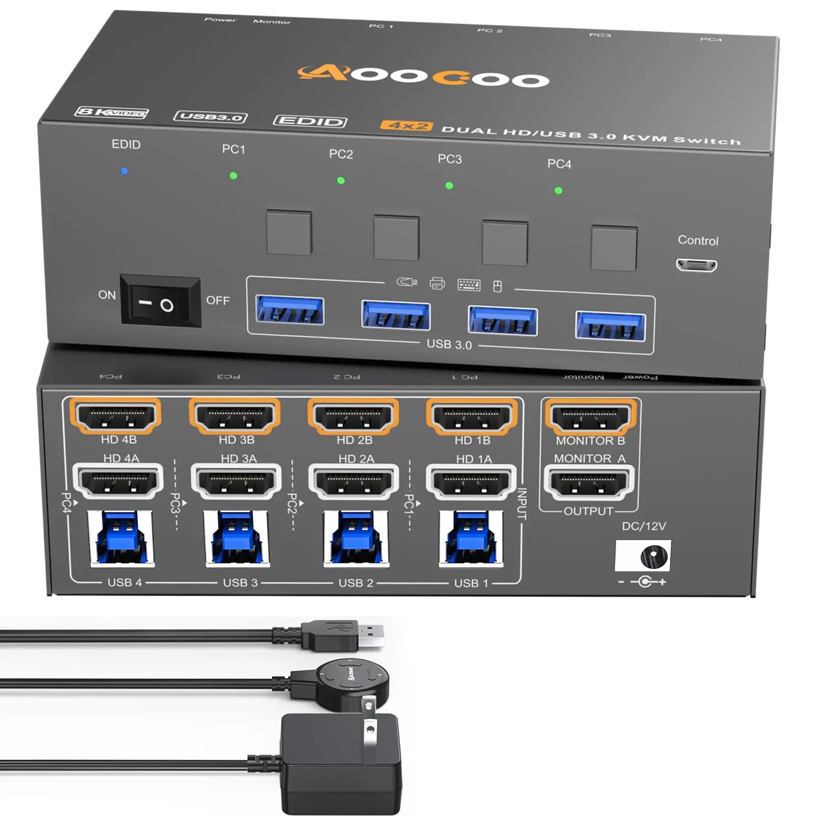 KVM Switch 2/3/4 Computers 2 Monitors,KCEVE Dual Monitor HDMI With EDID KVM Switch USB 3.0 Version,4K@60Hz/8K@60Hz HD Resolution