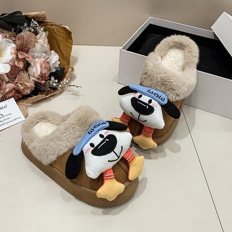 Ka Ai мультяшные тапочки-щенки женские для улицы 2025 осень и зима новые модные хлопковые тапочки с толстой подошвой и ленивой мордочкой 41 коричневый