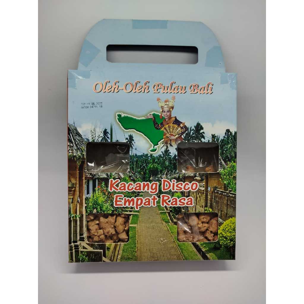 Kacang Disco 4 rasa Riris Bali Paket Isi 4 dalam 1 box diolah menggunakan kacang lokal pilihan dikemas dengan berat netto 150gr/boxnya. Rasanya yang gurih, enak, dan renyah sangat cocok menemani anda disaat santai.